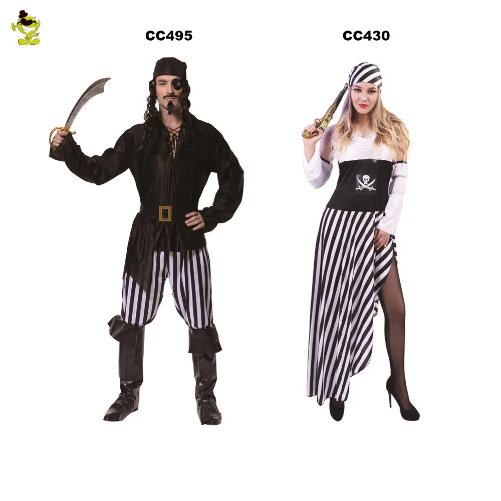 Pirate Couples Halloween Costumes White Strips Adult Cosplay