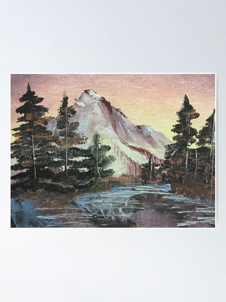 Bob Ross Inspired Oil Painting Of Beautiful Mountain Scenery With
