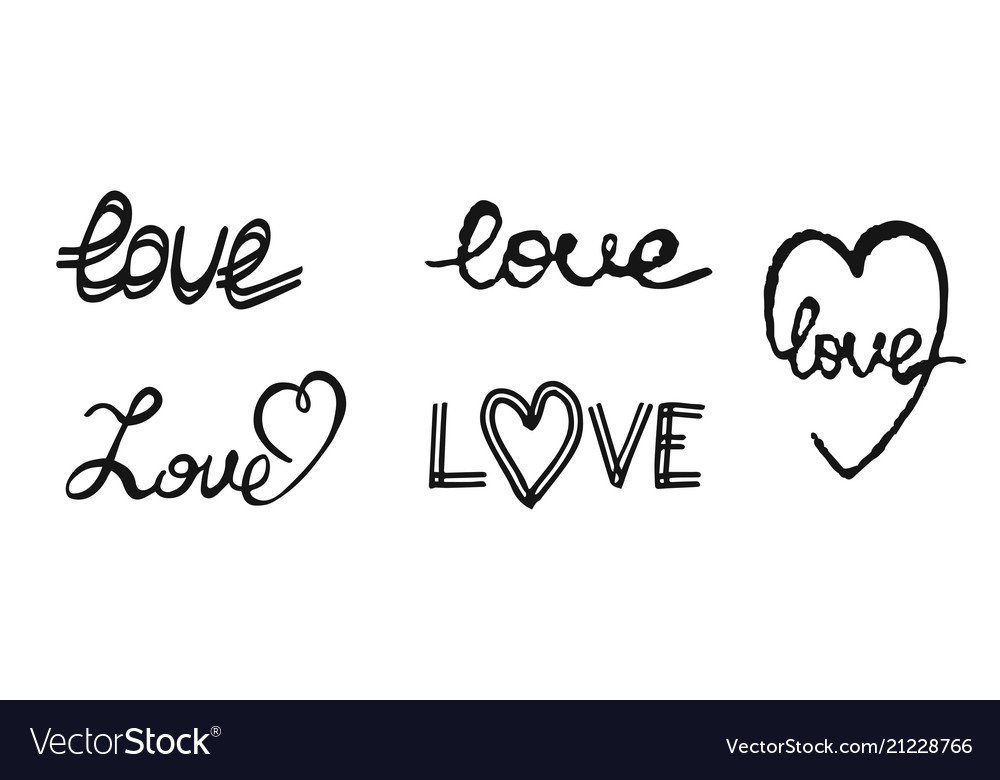 Set Stickers Calligraphy Love Design Royalty Free Vector